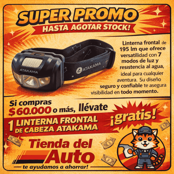 Si compras $ 60.000 o más en el total de tu compra en cualquier producto de la tienda, llévate gratis 1 linterna frontal de cabeza Atakama!
